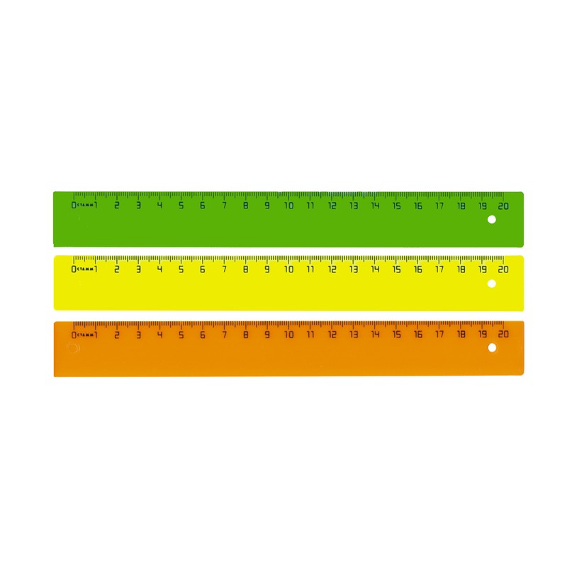 20-сантиметровая линейка Стамм выполнена из полистирола. Линейка предназначены для чертежных работ. Прозрачные, флуоресцентные цвета: розовый, желтый, зеленый, оранжевый.