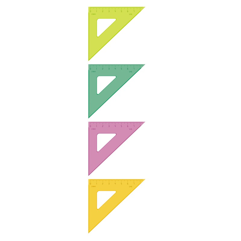 Треугольник пластмассовый Стамм 45 градусов 7 см для чертежных работ. Флуоресцентные цвета.
