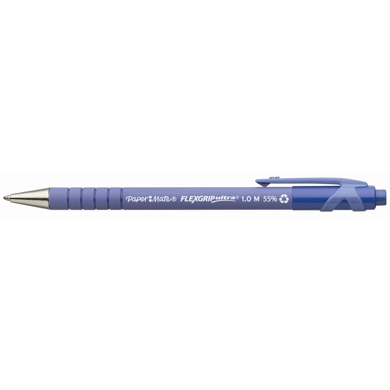 Ручка Paper Mate Flex Grip имеет прорезиненный корпус синего цвета из экологичного материала и металлический наконечник. Ручка одноразовая, оснащена кнопочным механизмом. Комплектуется стержнем с яркой светостойкой пастой синего цвета.