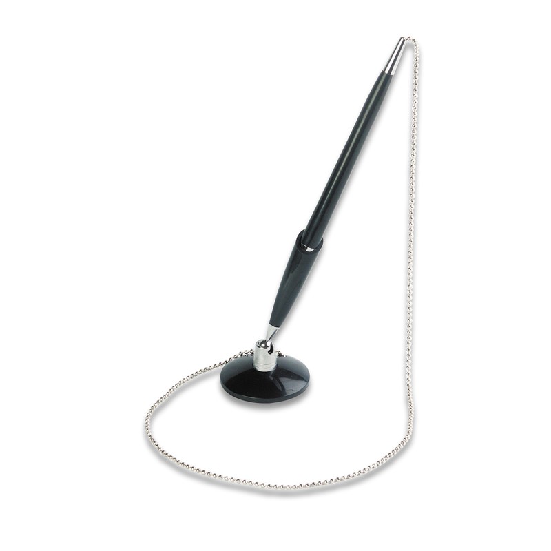 Многоразовая шариковая ручка с синим цветом чернил. Модель в черном корпусе специально разработана для офисов и различных учреждений: с одной стороны крепится к 58-сантметровой металлической цепочке, а с другой — к специальной подставке с липким основанием для установки на столах или тумбах. Ручка комплектуется сменным стержнем, толщина линии составляет 0,5 мм. Дополнительные стержни для ручки вы сможете найти во вкладке «Расходные материалы»