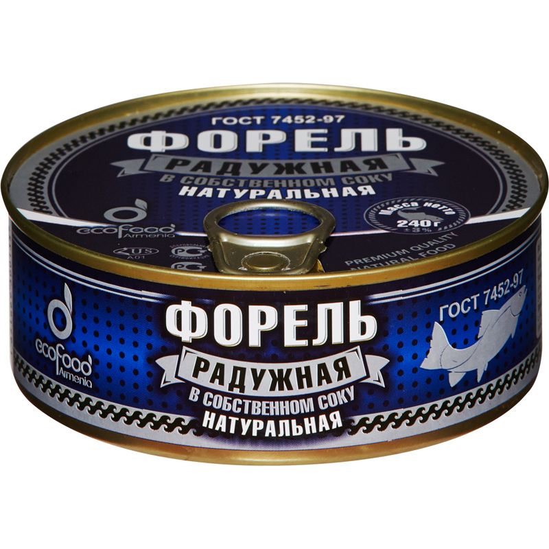 | Форель Эко Фуд в собственном соку натуральная ж/б,240гр |