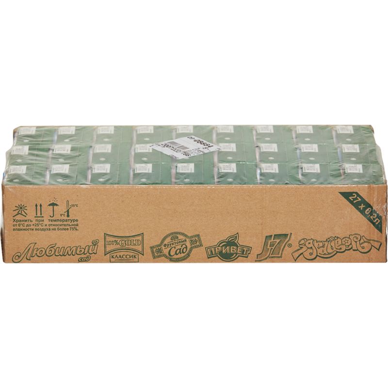 Апельсиновый сок J7 с мякотью, без добавления сахара. Поставляется упаковками, в упаковке 27 штук.