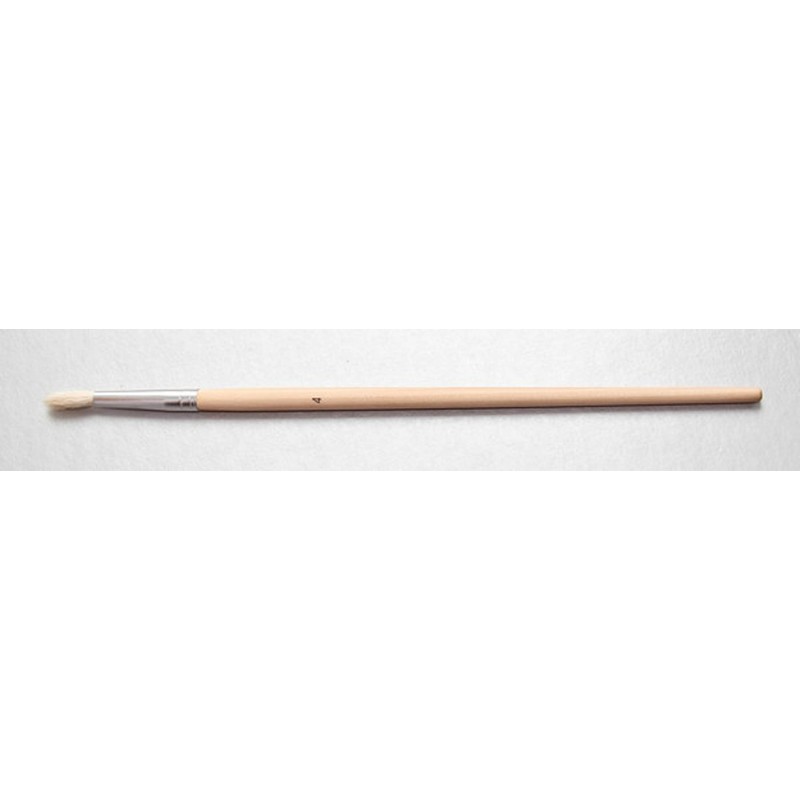 Кисть производится из волоса козы(хвост, борода), не имеет вершинки, не собирается в конус, несколько хуже отдает краску. Предназначена для работ с водорастворимыми красками и клеями. Цвет белый.