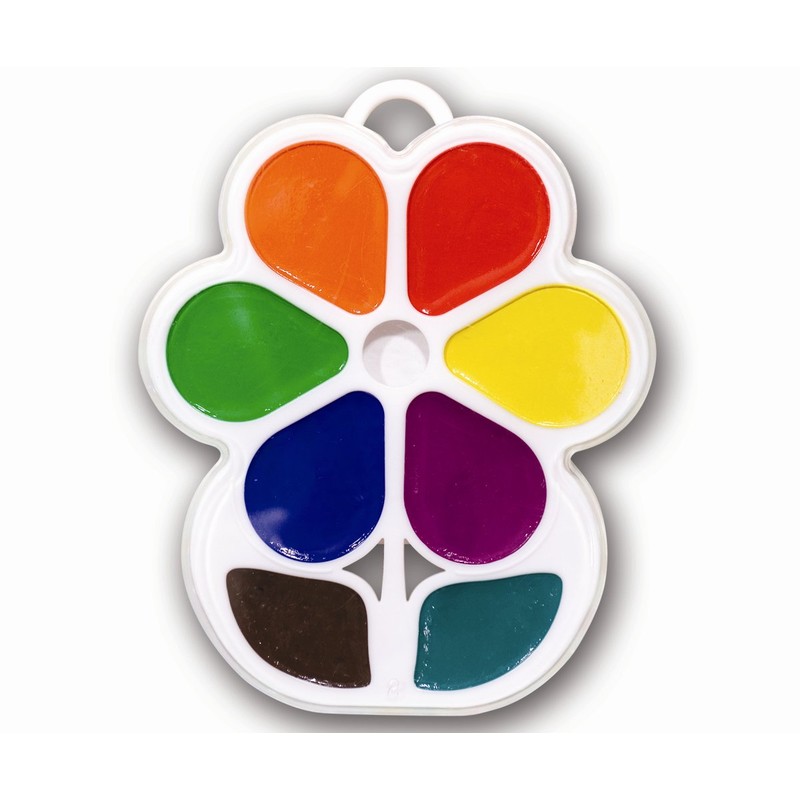 Медовые краски «Цветочек» поставляются в пластиковом футляре с прозрачной крышкой, который имеет форму цветка. Краски легко смываются с рук и одежды, подходят для использования детьми младшего возраста. В наборе 8 базовых цветов. Кисточка в комплект не входит.
