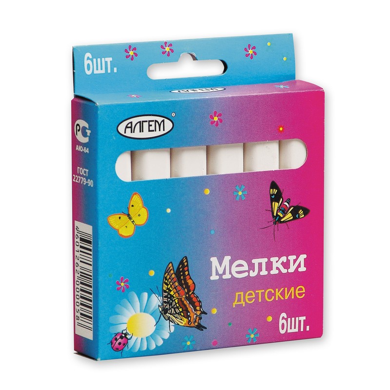 | 3730 Мел школьный белый 6шт./уп. 12гр. ср.тверд. Алгем Россия |