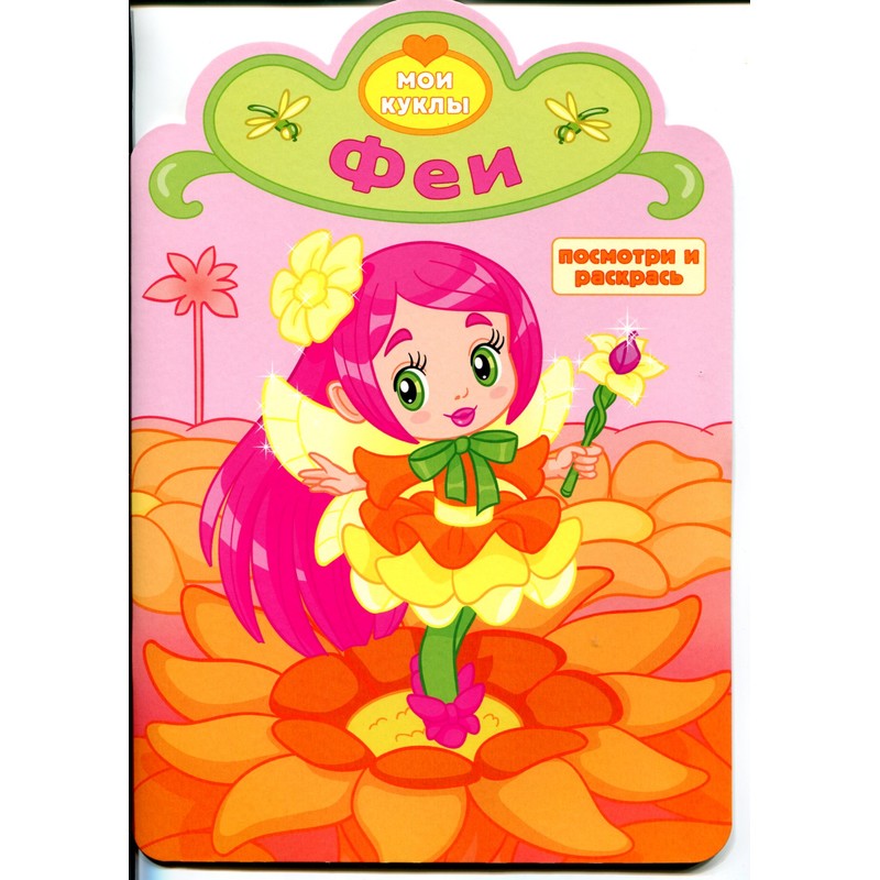 Раскраска с вырубкой «Феи» из серии «Посмотри и раскрась». Внутренний блок содержит картинки для раскрашивания и иллюстрированный пример. Формат страниц — 205×295 мм. Раскраска предназначена для девочек от трех лет.