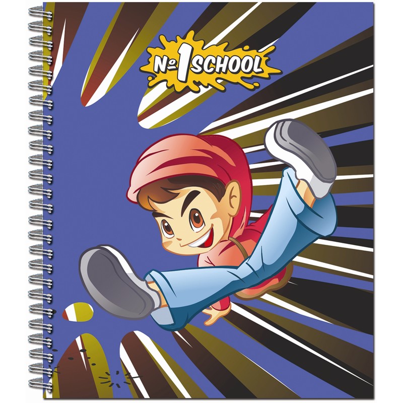 Тетрадь формата А5 с обложкой из картона. Дизайн — «Мальчик-аниме», крепление — металлический гребень. Внутренний блок содержит 48 листов офсетной бумаги в клетку стандартной плотности (55 г/кв.м). Листы оснащены полями.
